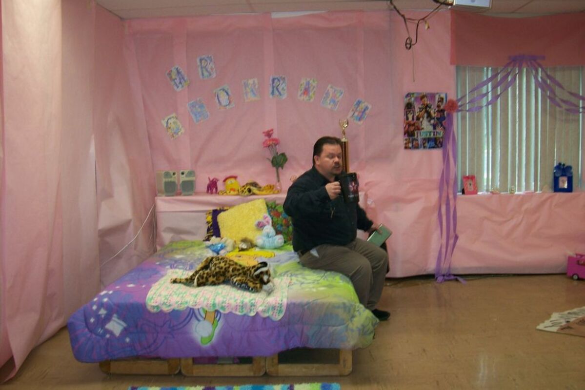 Harrington High teacher Mike Cronrath, the advisor to the Washington State Field, returned to the school to find his room re-decorated. It has been a tradition for the seniors to decorate his room to welcome him back. This year’s theme was “Princess Room.” Cronrath discovered his classroom was turned into a “pretty in pink” bedroom. The bedroom included a bed, dollhouse, pink bathrobe and boa, and even Justin Bieber posters on the walls. Cronrath was a good sport about it.